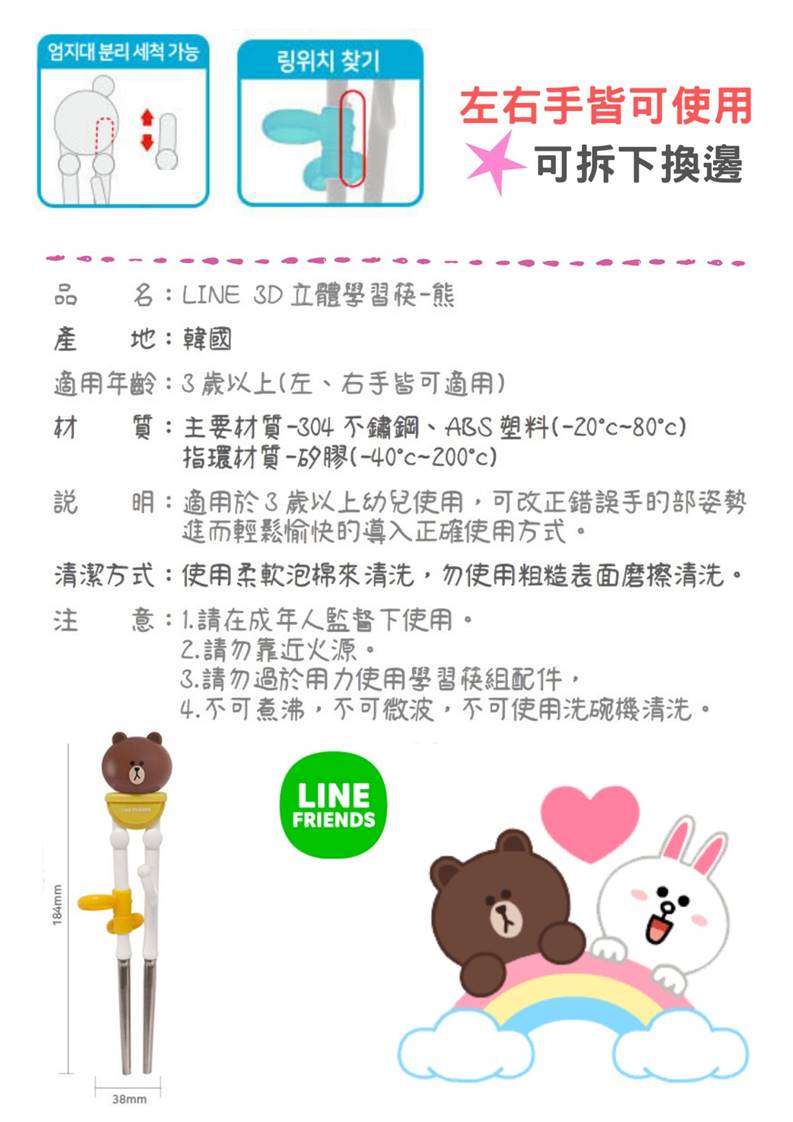 Home / LINE FRIENDS Learning Tableware (Korea) / LINE 3D Training Chopstick (Brown)
