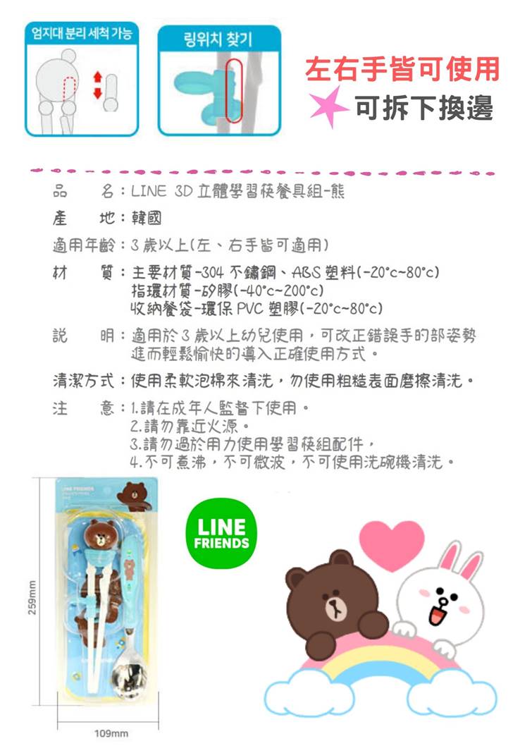 Home / LINE FRIENDS Learning Tableware (Korea) / LINE 3D立體學習筷餐具組-熊